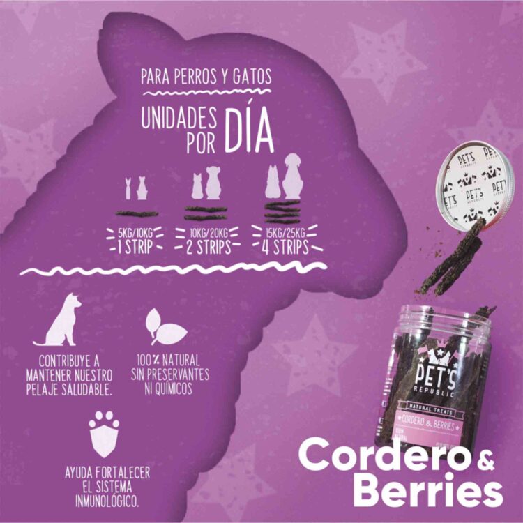 Snacks 100% naturales y sin preservantes. Ayuda a fortalecer el sistema inmunológico y mantiene un pelaje saludable y brilloso.